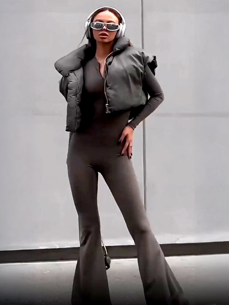 Black Vest + Grey Jumpsuit