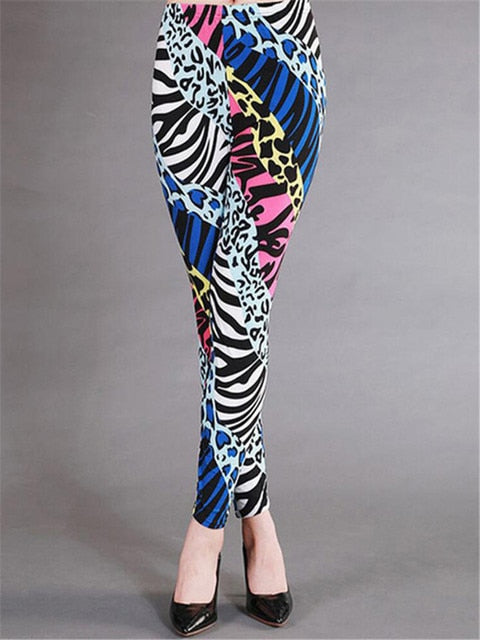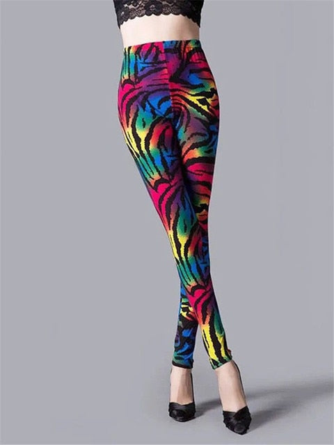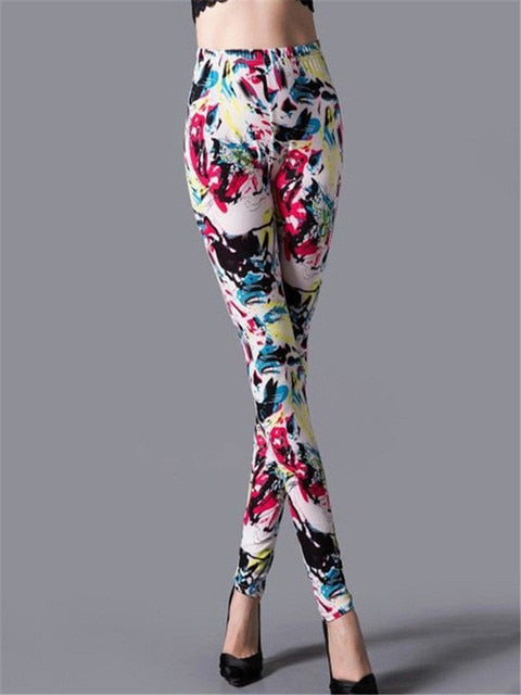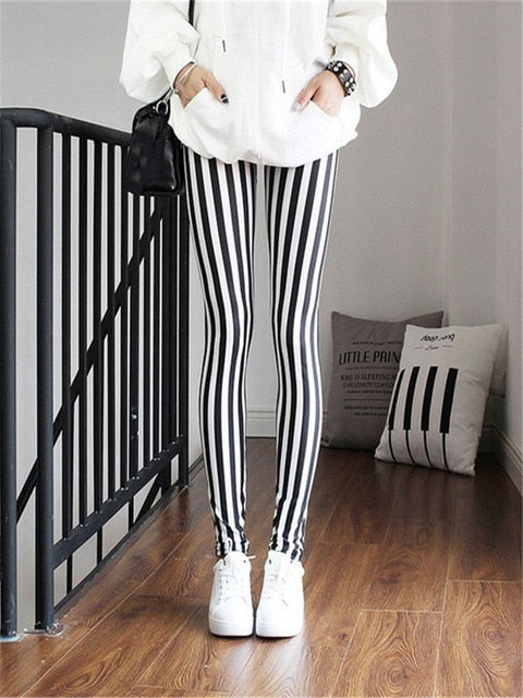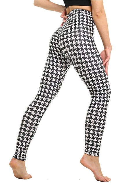 High Waist Leggings Pants Fitness Graffiti Women Fashion Houndstooth Push Up Running Elastic Trousers Stripe Dot Bottom