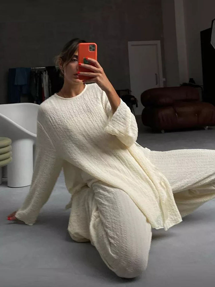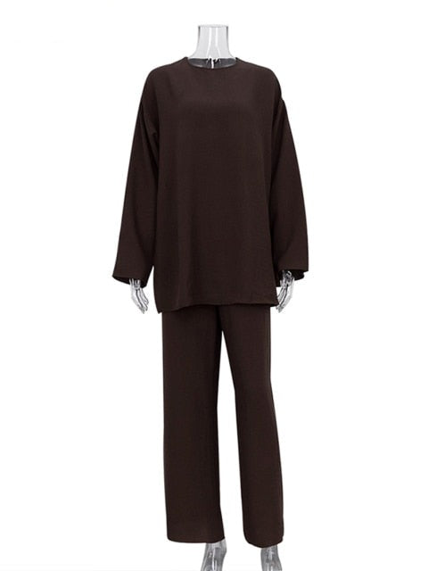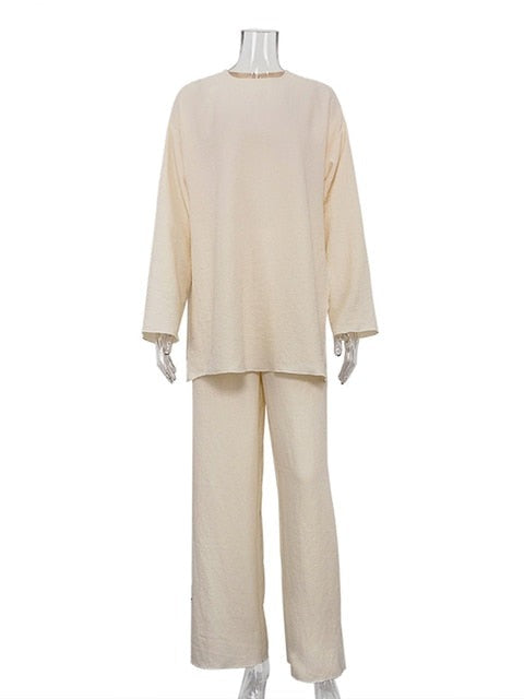 Ashoreshop: Relax Loose 2 Piece Pants Set Women Comfortable Long Sleeve T-Shirt Matching Sets Wide Trousers Suit Vintage High Waist Pant Set