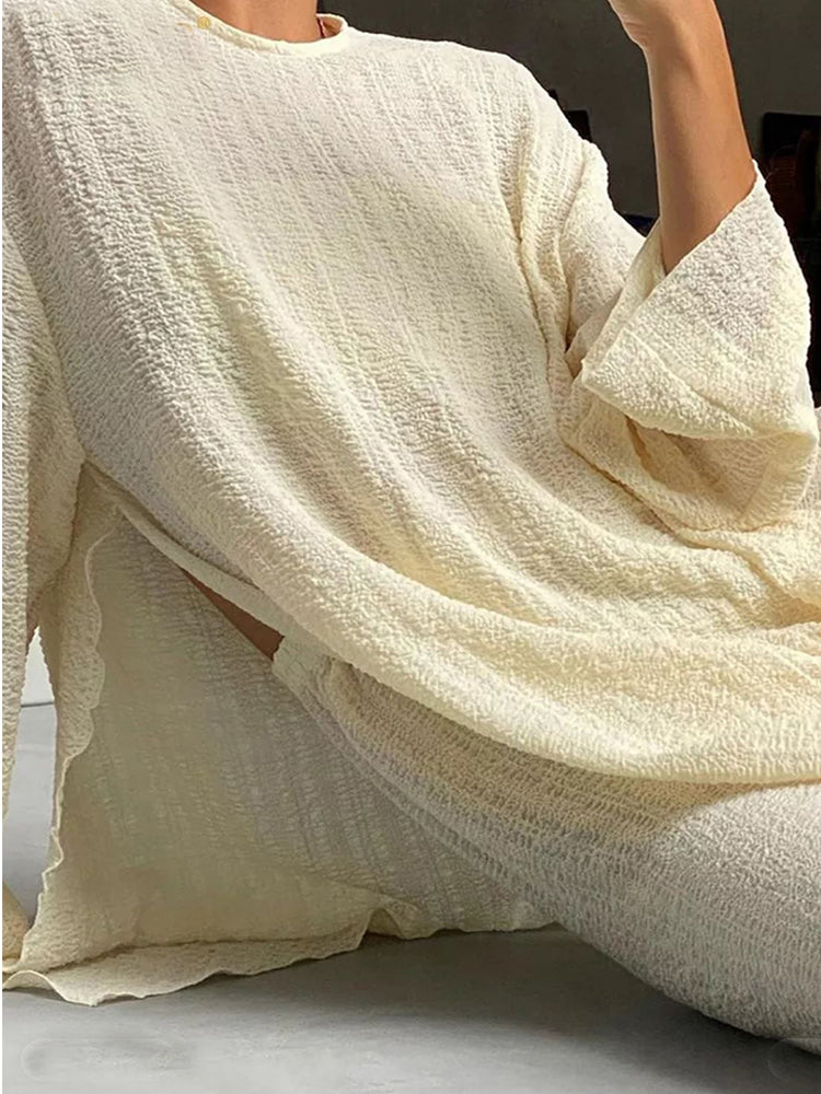 Relax Loose 2 Piece Pants Set Women Comfortable Long Sleeve T-Shirt Matching Sets