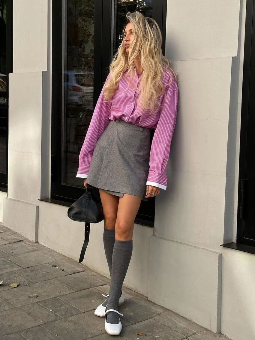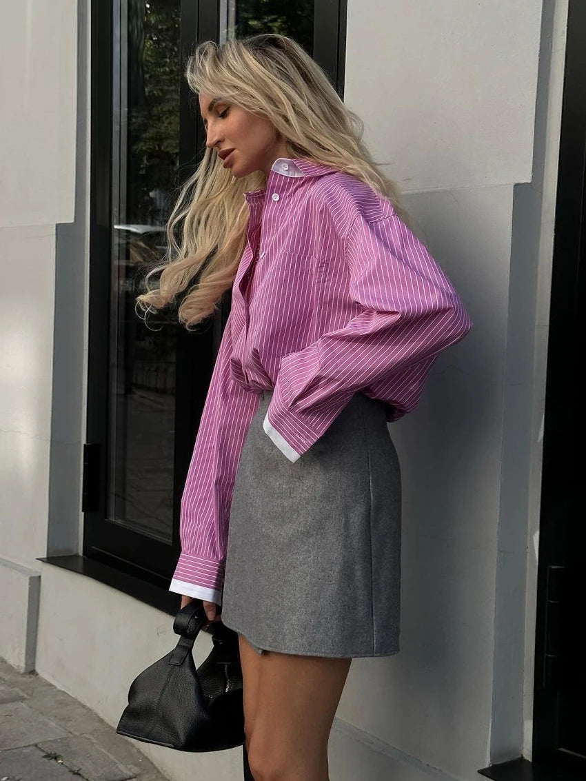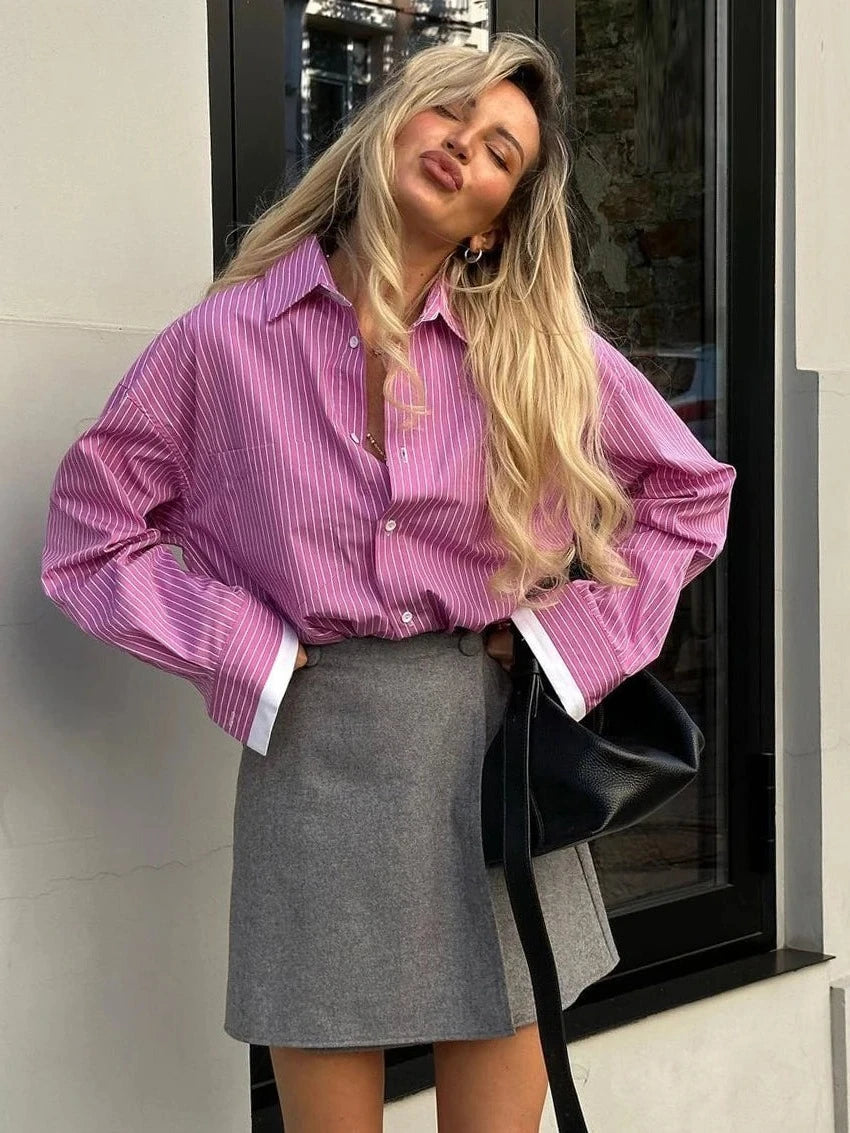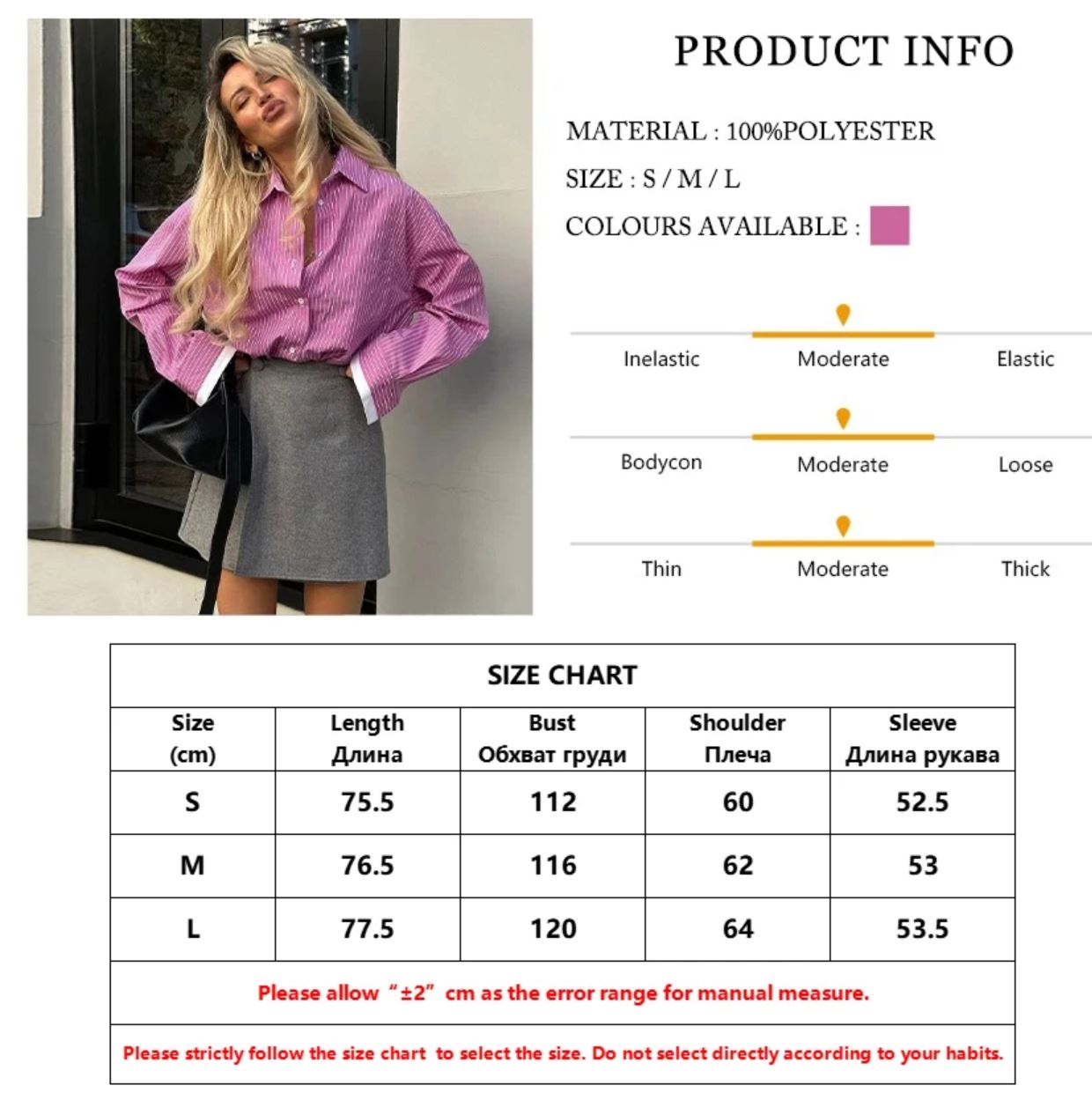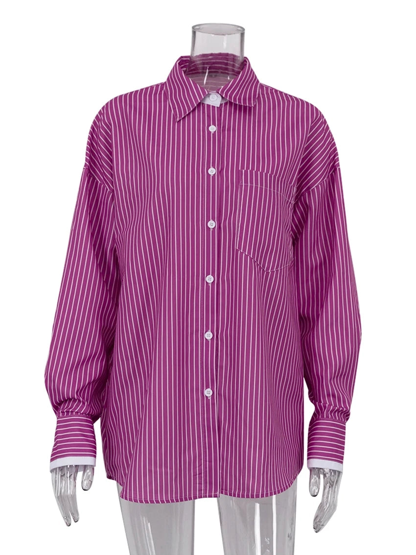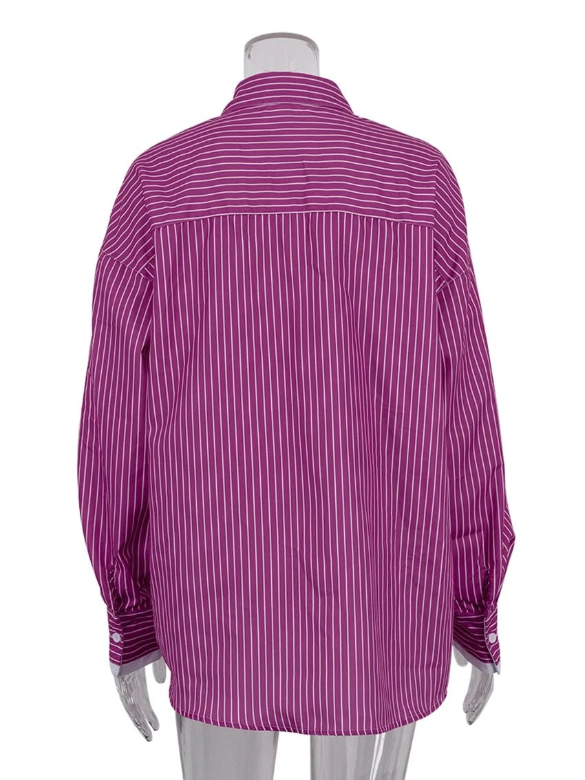 Office Womens Shirts Vintage Stripes Loose Fits Long Sleeve Shirts