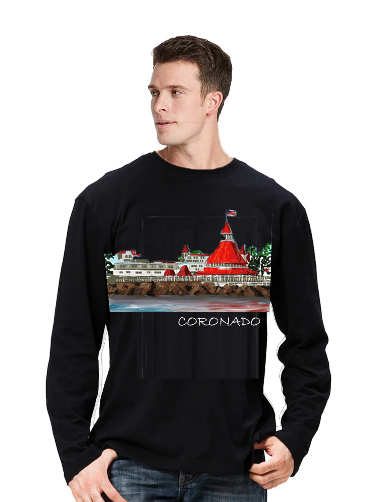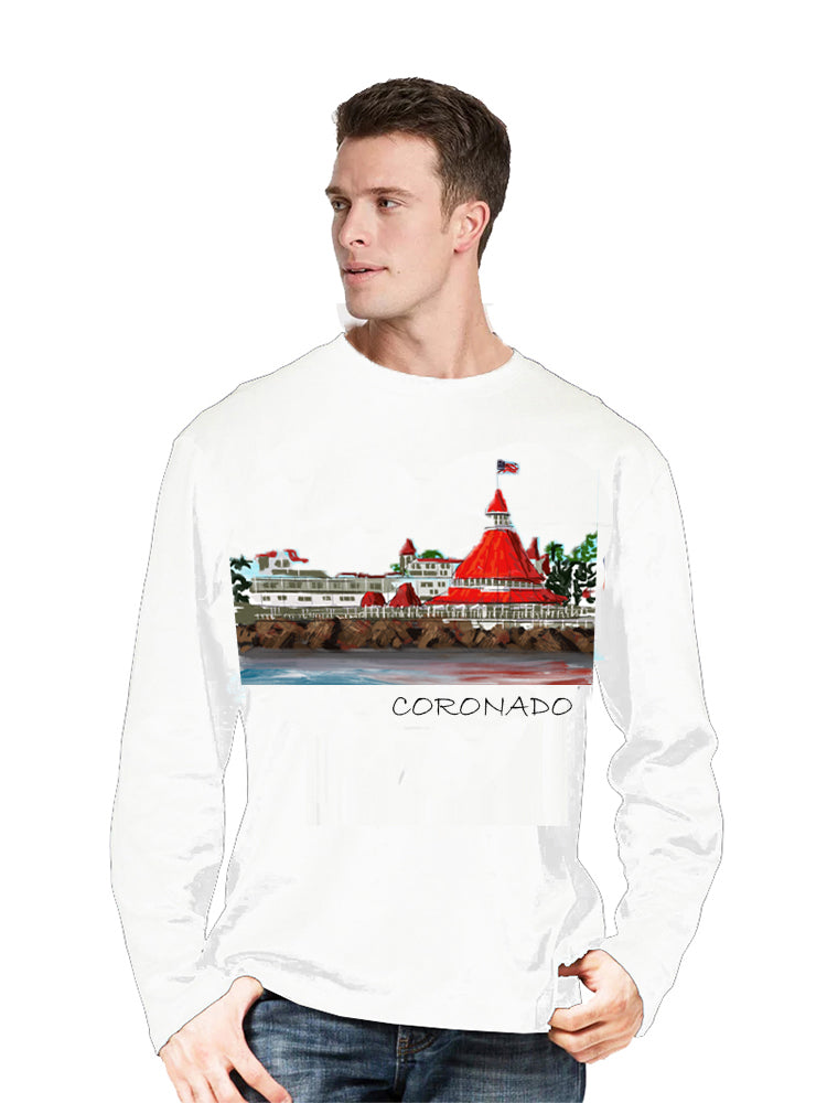 Coronado-CA, USA Ashore Travel Shirts- Series No. 238003 Artist Handpaint Long Sleeve Shirt EU Size 100% Cotton High Quality Gifts Tops