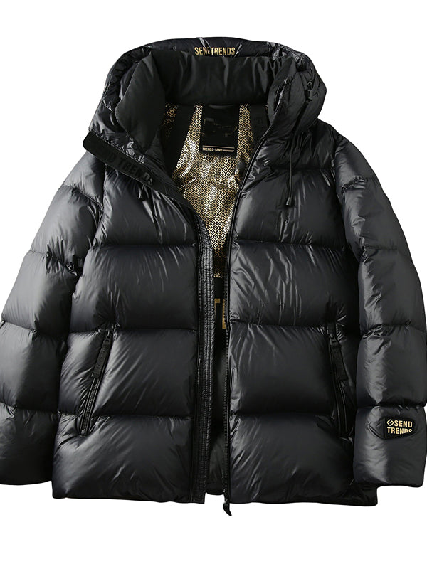 Mens Real Goose down jacket 90% goose down Mens warm hooded short down coat