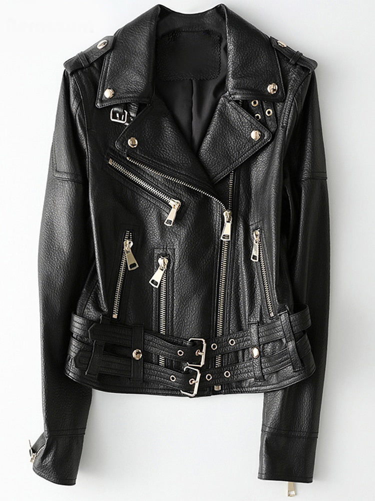 Ashore Shop Spring Autumn Short Black Soft Faux Leather Biker Jacket Women Long Sleeve Belt Autumn Cool Stylish European Fashion