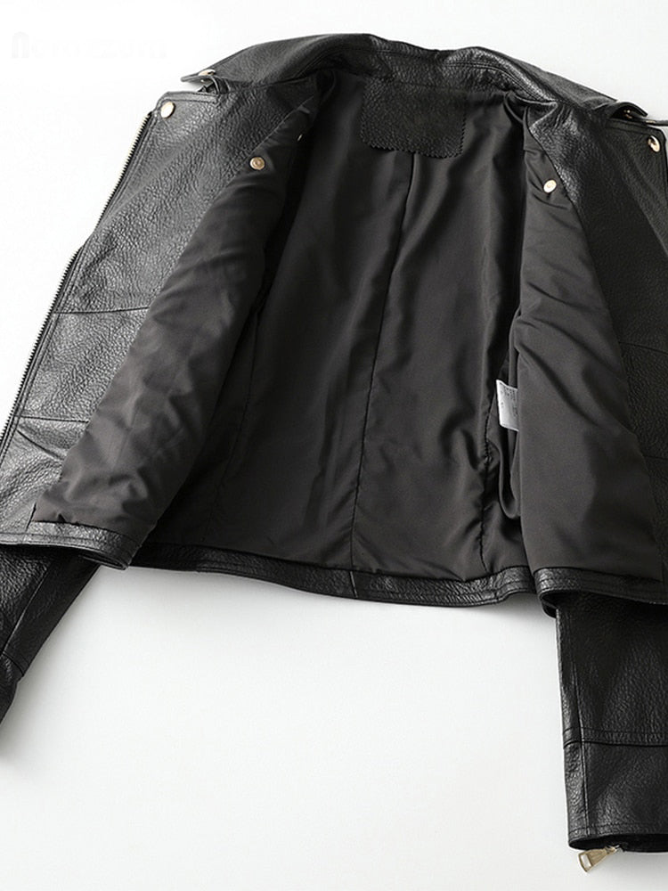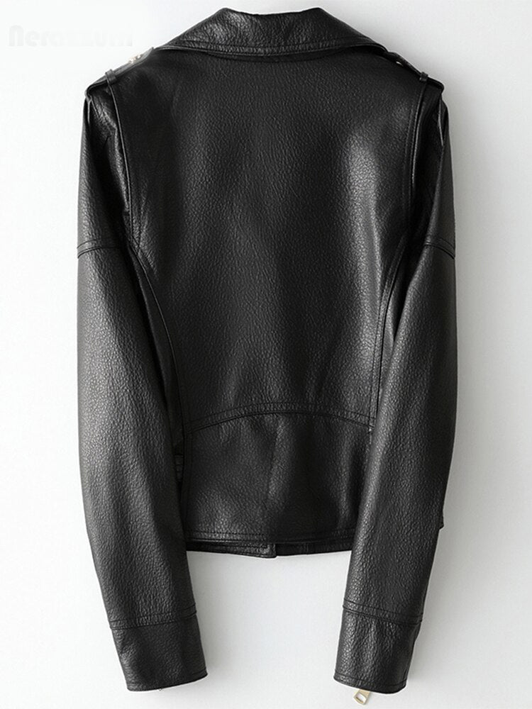 Ashore Shop Nifty and Chic Black Faux Leather Designer Long Sleeve Biker Jacket Free Shipping: 7-15 Business Days Season : All season