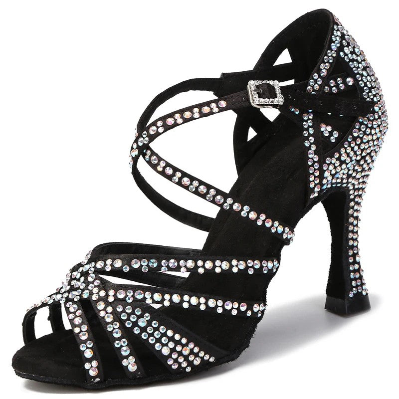 Ashore Shop Women Party Dance Shoes Satin Shining rhinestones Soft Bottom
