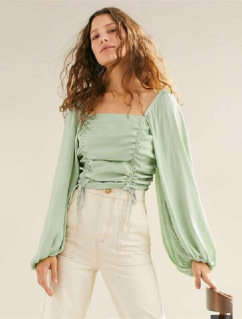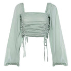 Ashore Shop Women's Long Sleeve Classic Light Green Indie Top Free Shipping: 7-15 Business Days Decoration: Bandage