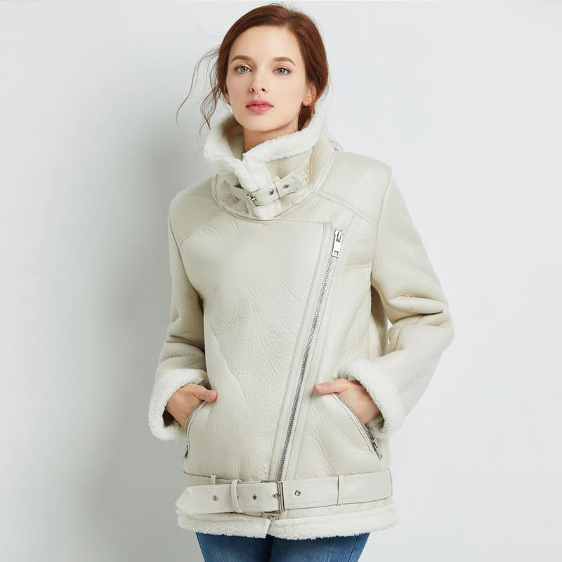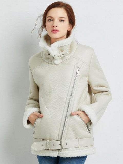 Ashore Shop Women's Sheepskin Winter Faux Leather Fur Lined Jacket Free Shipping: 7-15 Business D Closure Type: zipper