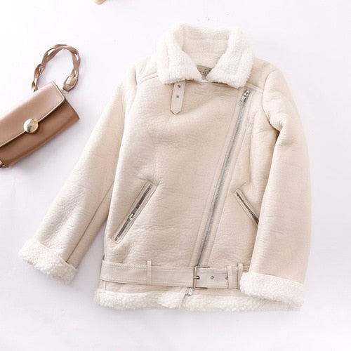 Ashore Shop Women's Sheepskin Winter Faux Leather Fur Lining Jacket