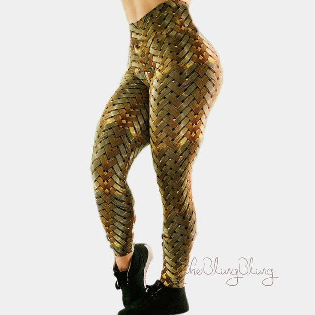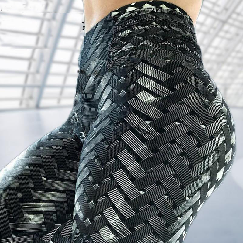 ASHORESHOP Black Weave Printed Women Fitness Leggings Push Up Workout Legging