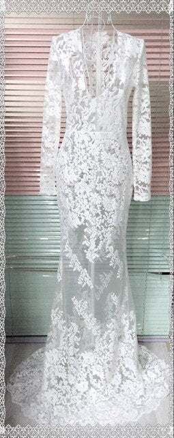 AshoreShop lacey White Long Party Gown Spot Light On You Mesmerizing Sexy Mermaid Swirl