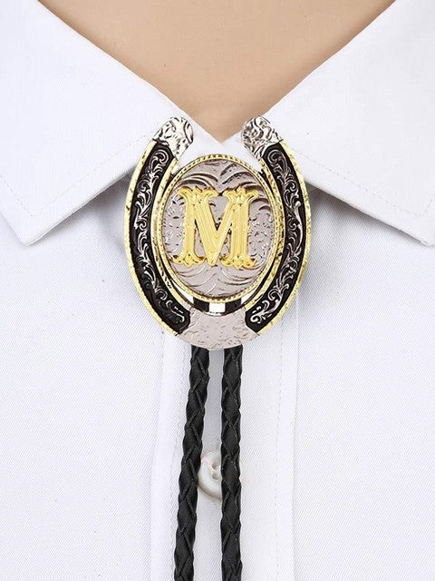 Gold Letter ABCDEFG-Z U shape bolo tie for man Indian cowboy western cowgirl leather rope zinc alloy necktie