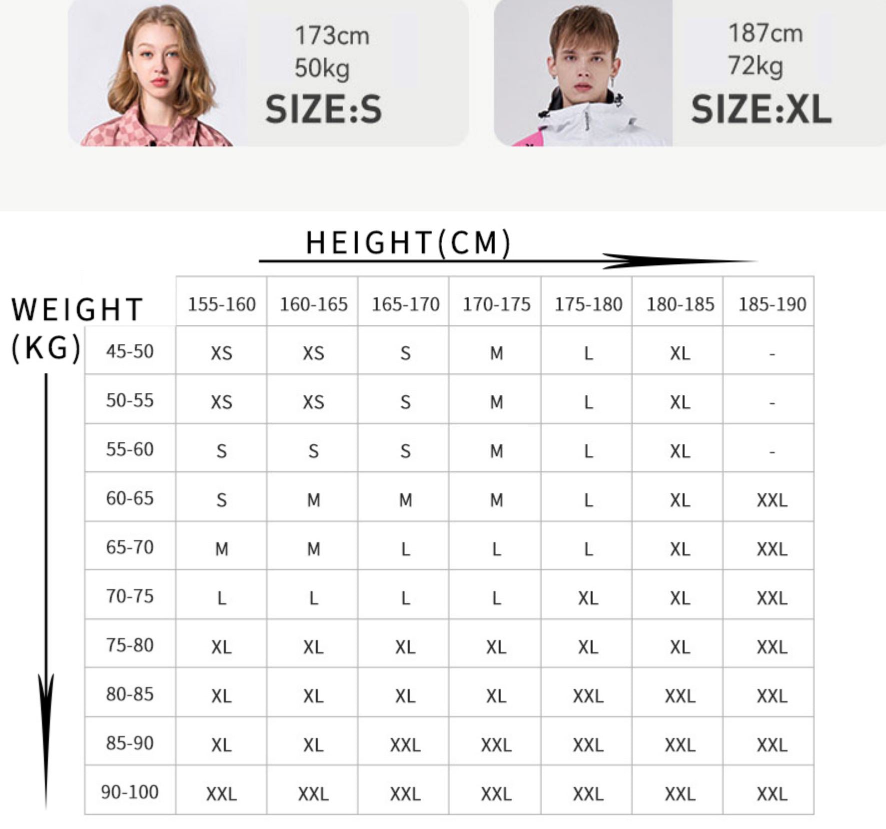 Ashore Ski Shop Size Chart of Mens Women One Piece Skisuits