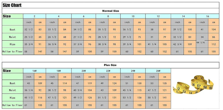 Size Chart of Elegant Pleats Prom Gown Maxi Dresses