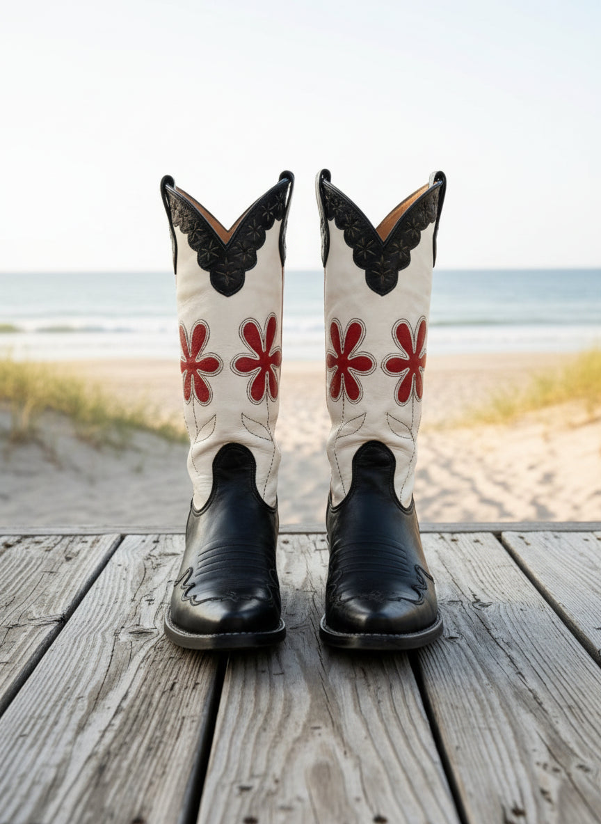women’s vintage cowgirl boots Pattern Blocking Cowgirl Flower Boots