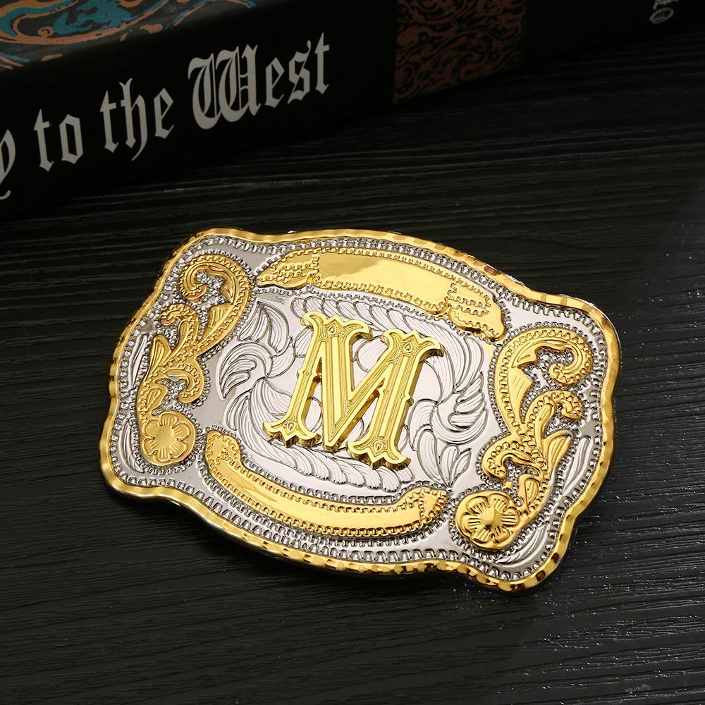 Rectangle gold Western Belt Buckle Initial Letters ABCDMRJ to Z Cowboy Rodeo Small Gold Belt Buckles for Men Women
