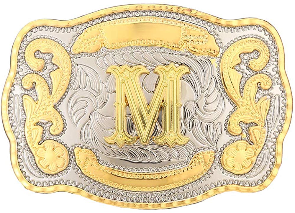 Ashore Western Shop: Rectangle gold Western Belt Buckle Initial Letters ABCDMRJ to Z Cowboy Rodeo Small Gold Belt Buckles for Men Women