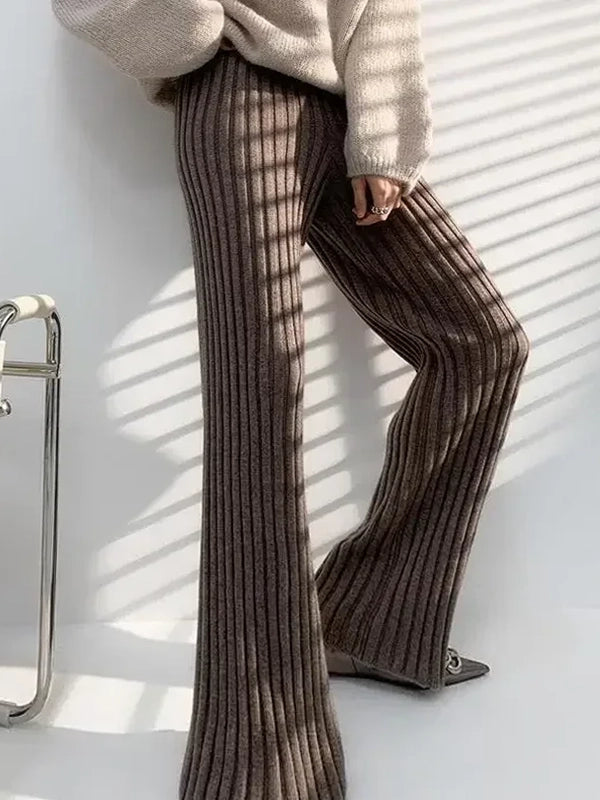 Knitted Pant Women Autumn Spring High Waist Wide Leg Pants Office Lady
