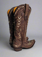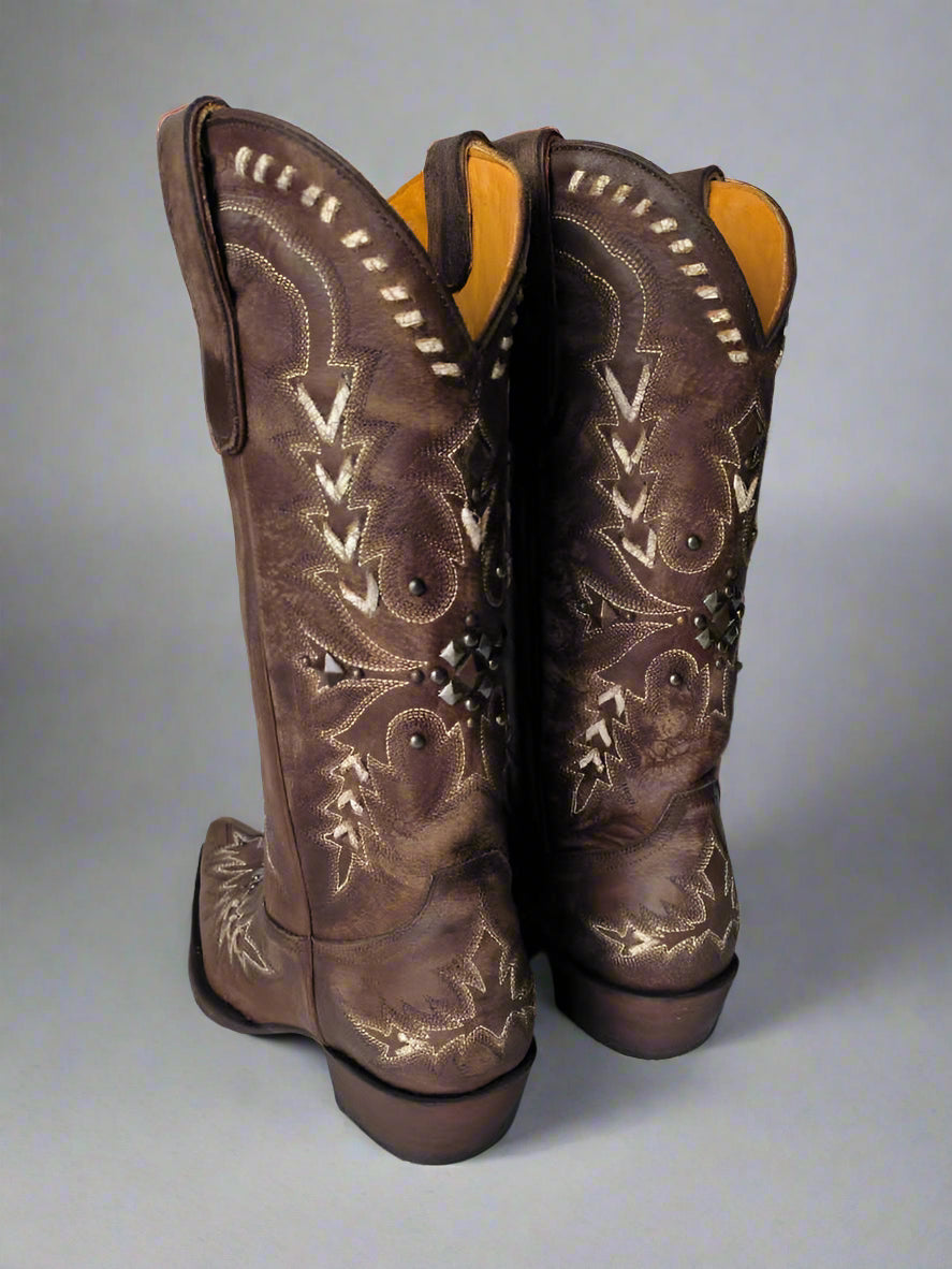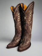 Ashore Western Shop rich brown leather finish with intricate white embroidery cowgirl high brown boots (Copy)
