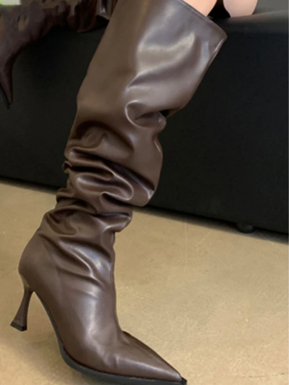Ashore Shop : Women's Long Runched Boots Ladies Pumps Shoes Fashion Design Pleated Slip-On Shoes Autumn Pointed Toe Female Knee High Boots 2023