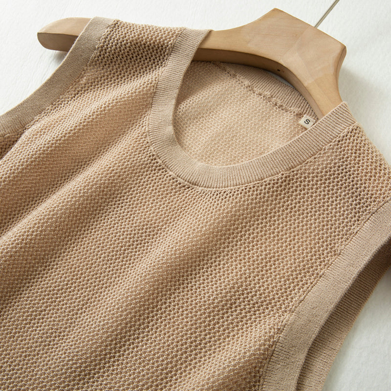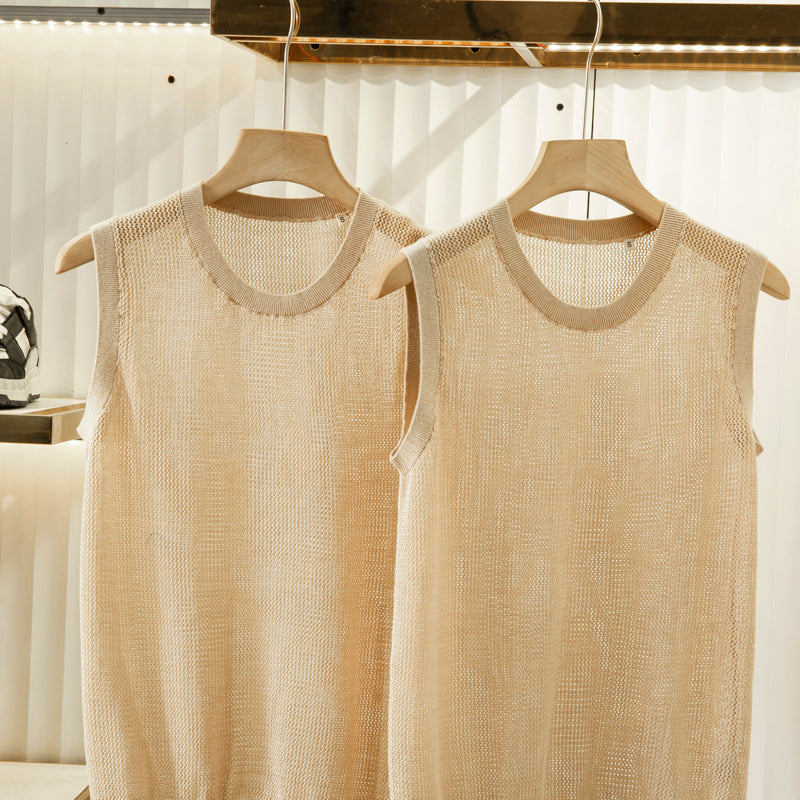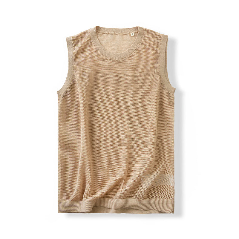See Though Linen Silk Mens Summer Sleeveless Airy Top
