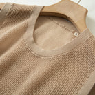 Ashore Shop men's summer sleeveless top is crafted from a luxurious blend of linen and silk, offering a featherlight and breathable feel ideal for warm-weather wear. The semi-sheer, airy knit construction allows for optimal ventilation while adding a subtly sensual, contemporary edge. Its relaxed fit drapes effortlessly over the body, enhancing comfort without sacrificing style. Designed for laid-back sophistication, this see-through top is perfect for beachside lounging, resort wear, or layering over a tank for a fashion-forward urban look. Refined yet relaxed, it embodies effortless summer elegance.