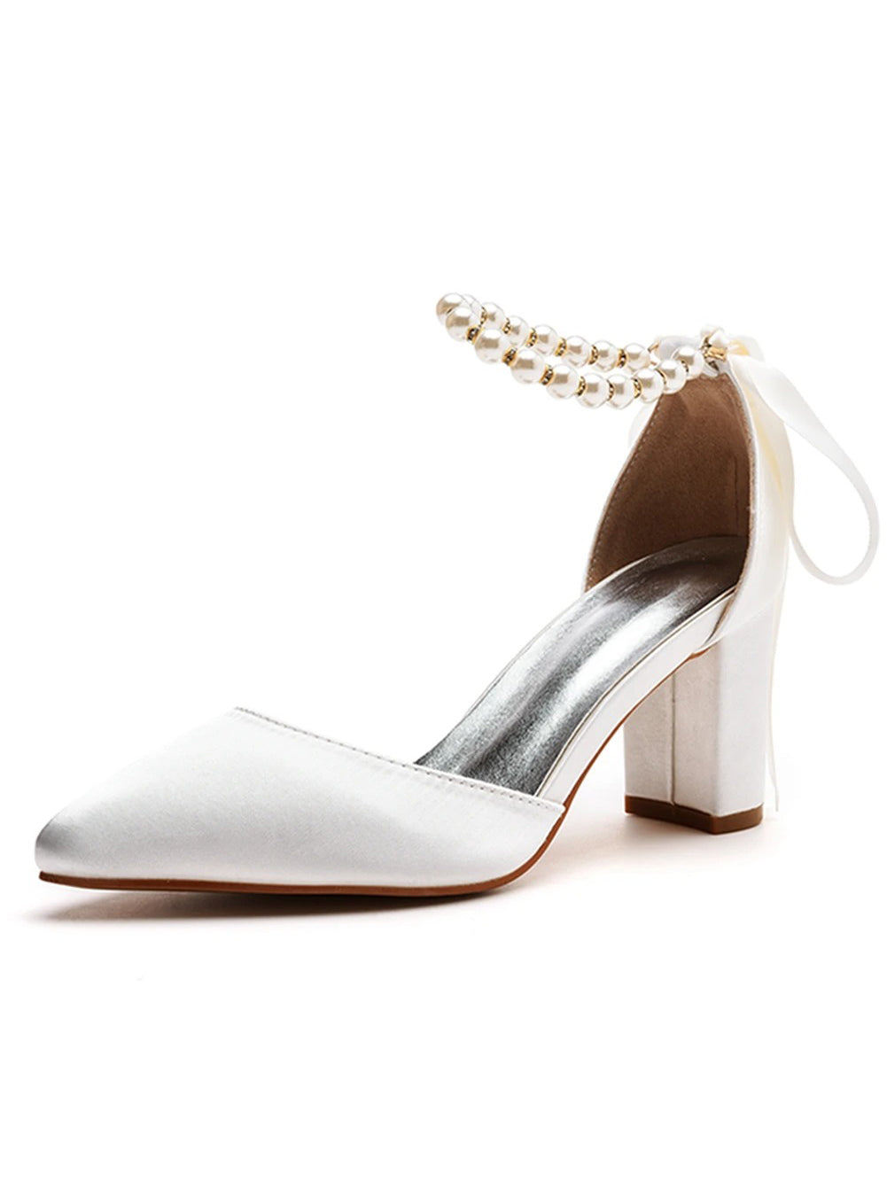 Ashore Shop Womens White Silk Beading Bride Dress Shoes