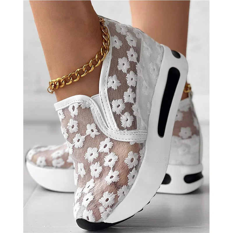 Ashore Shop womens Wedge Shoes Sequin Mesh Breathable Shoes Women Gold Silver Platform Sneakers