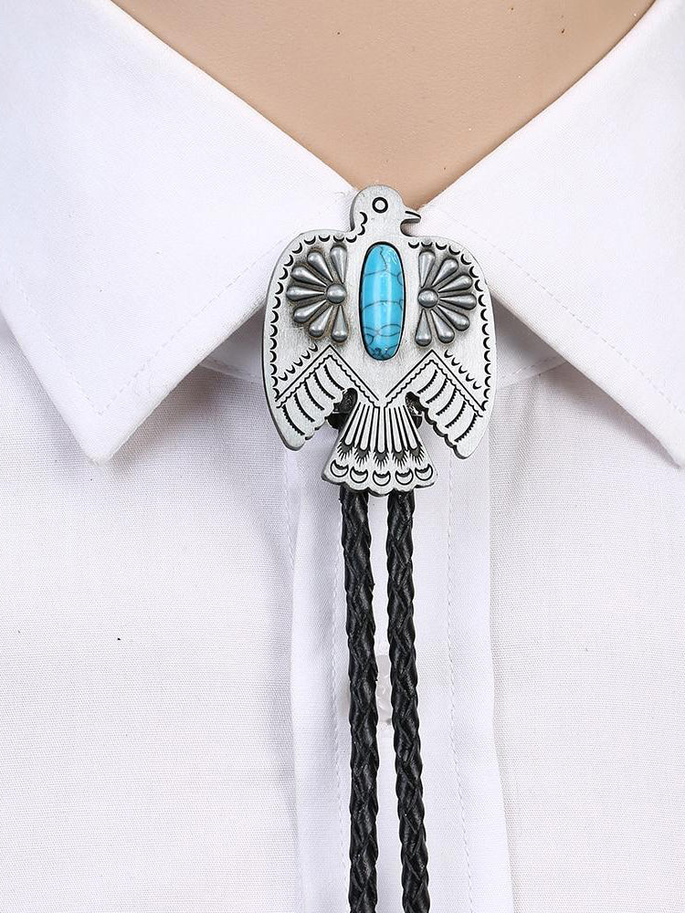 Cowboy West bolo tie natural pine eagle zinc alloy leather collar rope