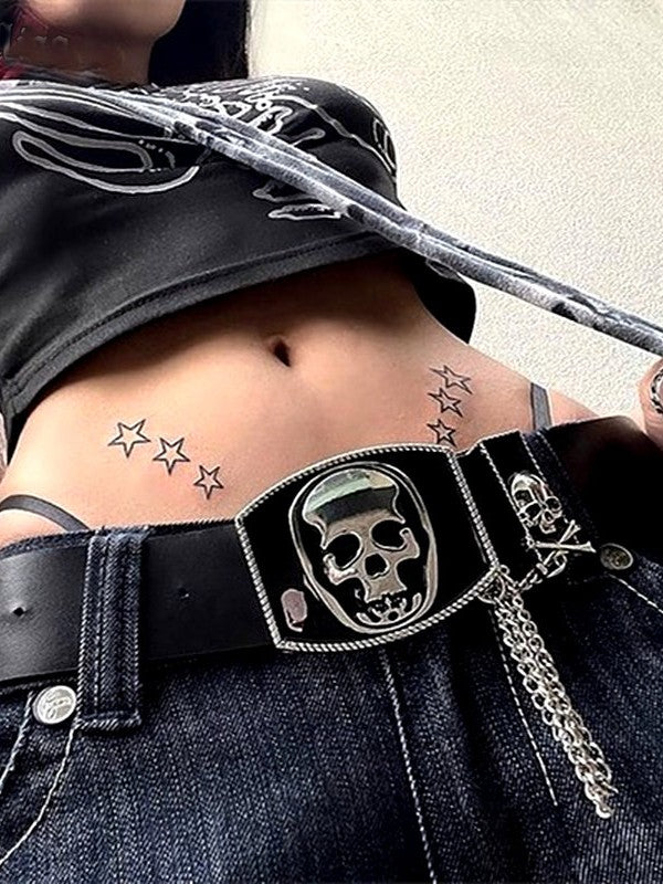 Ashore Shop Punk Belts for Women Luxury Designer Brand Pu Leather Skull