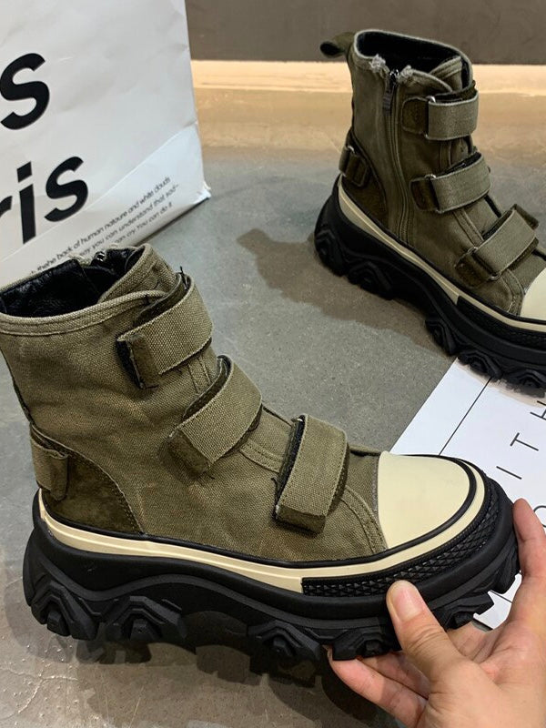 Women Canvas Flats Platform Sport Chelsea Ankle Boots 2023 Autumn New Designer Thick Platform Boots