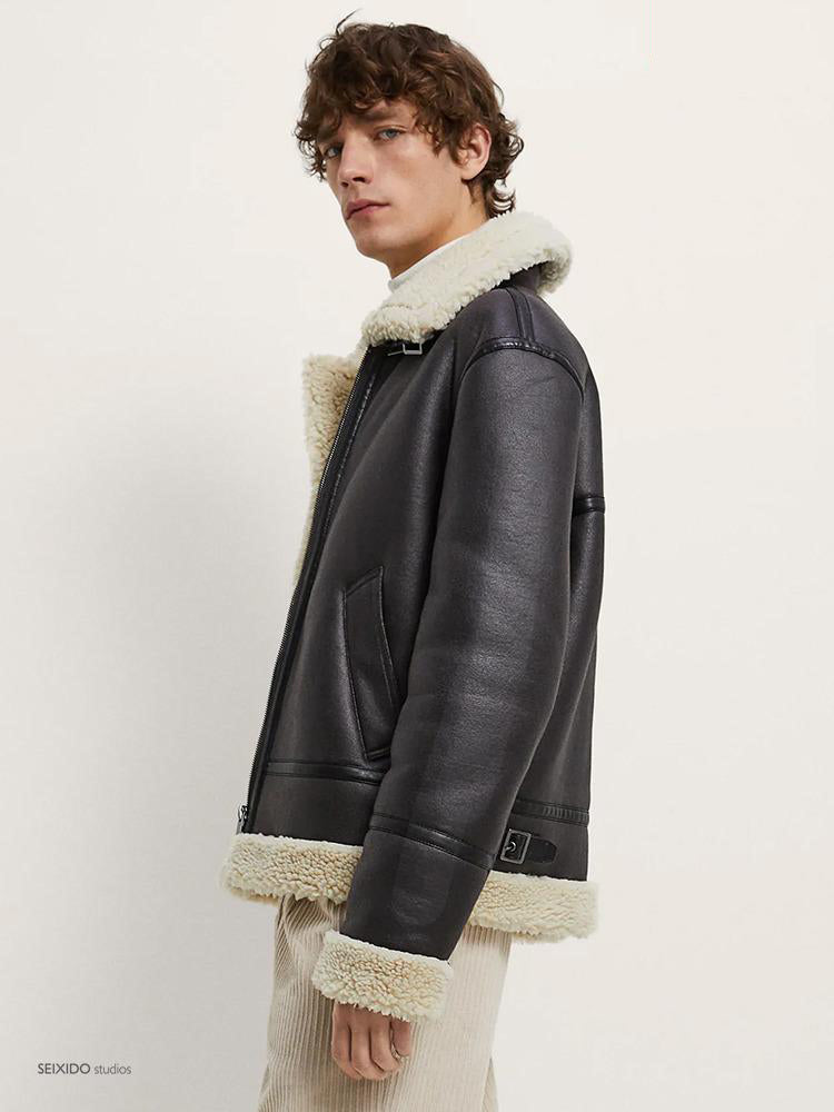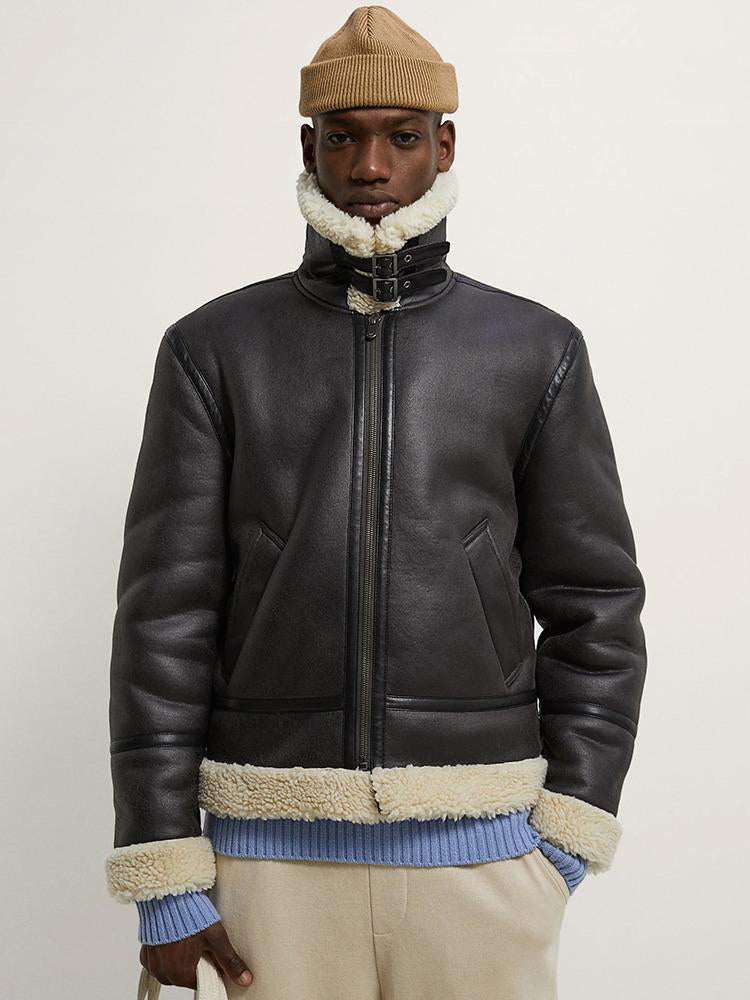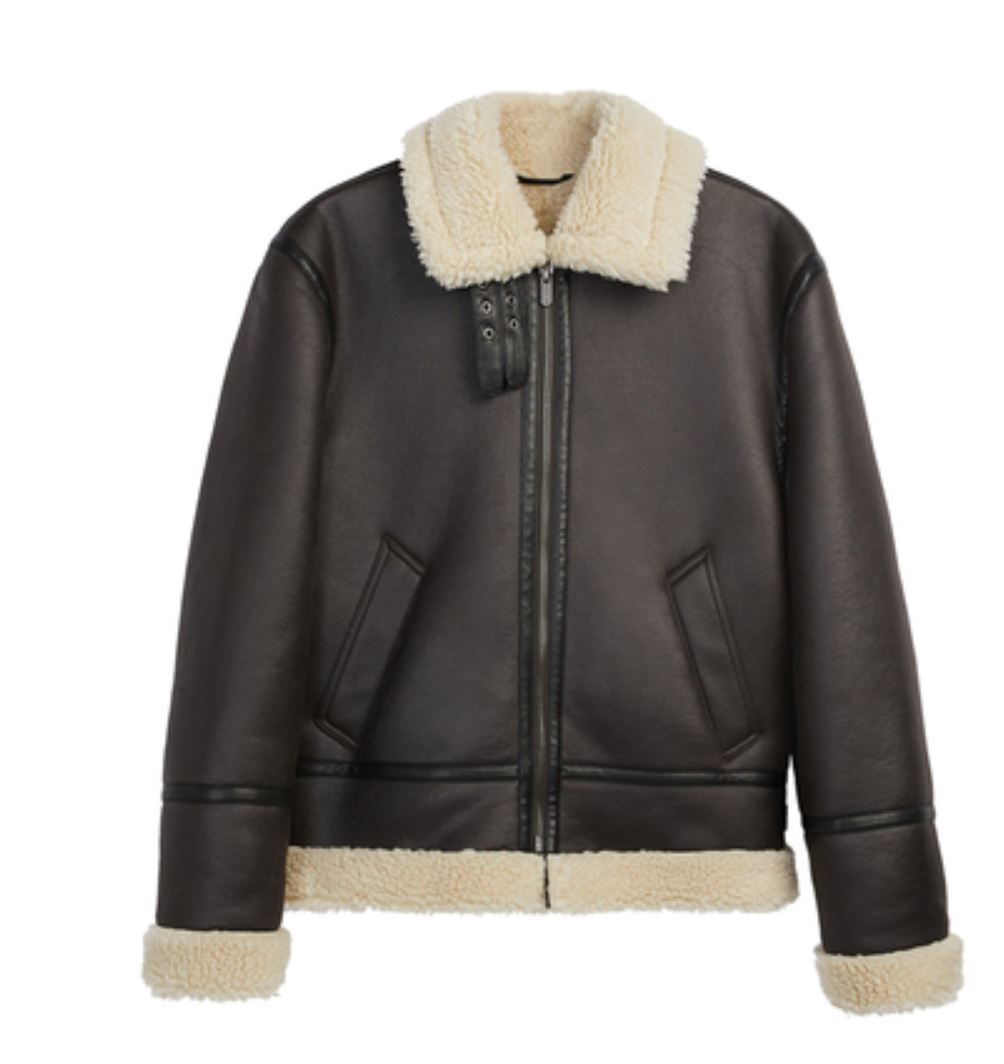 - Ashoreshop Mens Winter Motorcycle PU Leather Lambswool Coat Vintage Celebrity Style Leather Coat