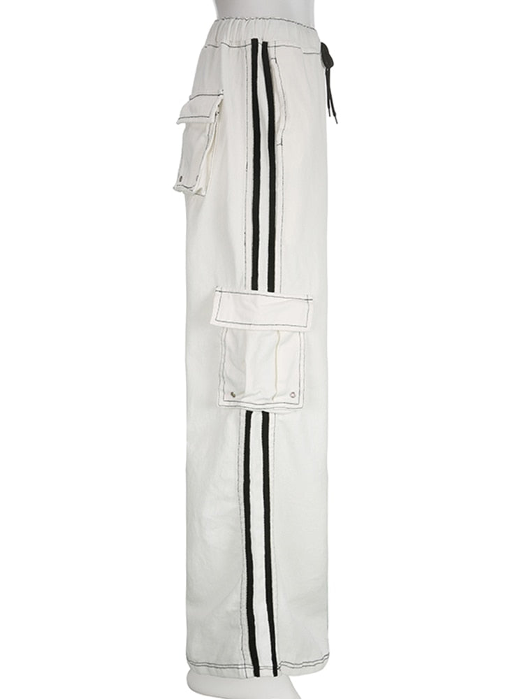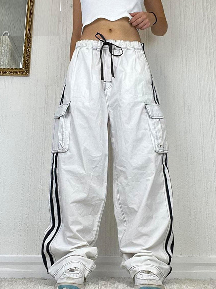 Casual Baggy Low Rise Jeans Pocket Patchwork Fashion Streetwear Cargo Pants
