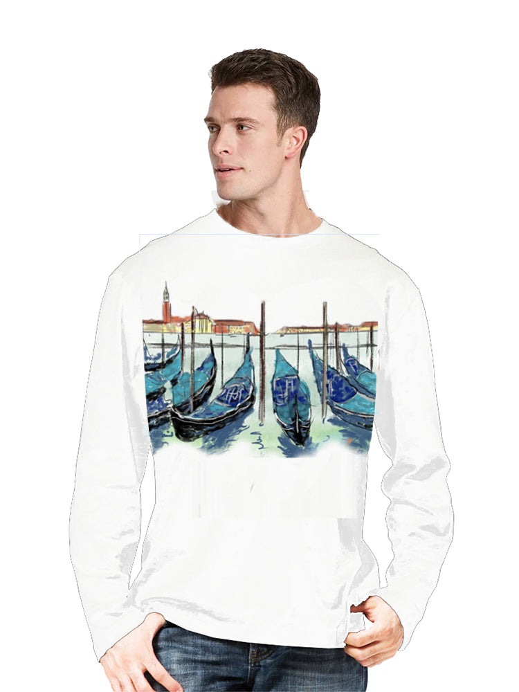 Venice-Italy Ashore Travel Shirts- Series No. 2330010 Artist Handpaint Long Sleeve Shirt EU Size 100% Cotton High Quality Gifts Tops