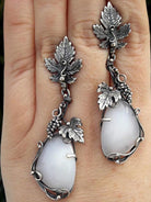 Ashore Western Shop: Vintage water droplets white stone earrings silver Indian Tribal metal carved leaves long dangle earrings for women