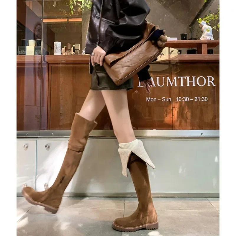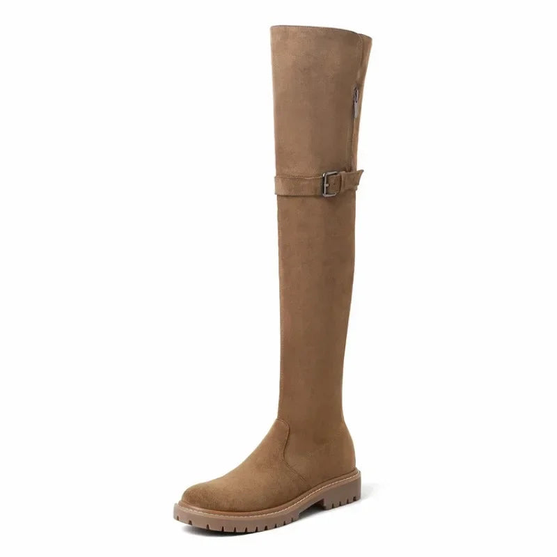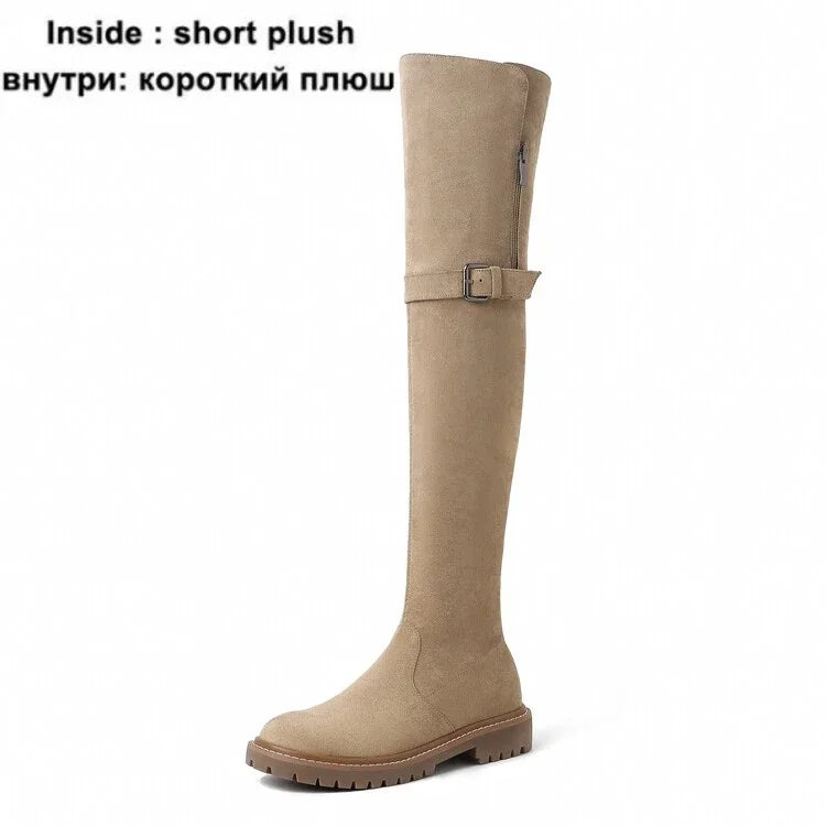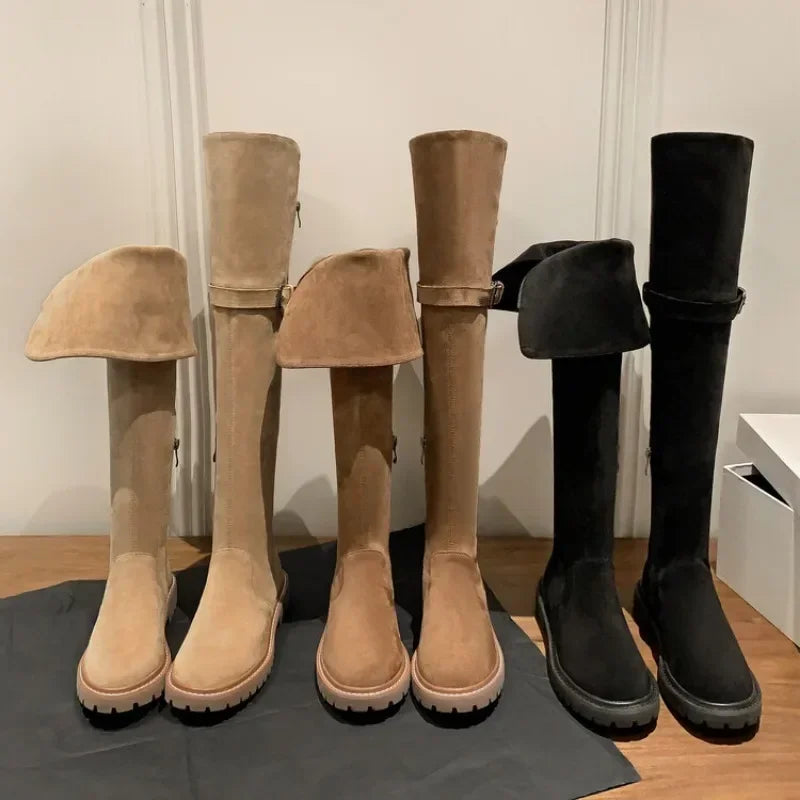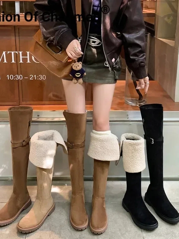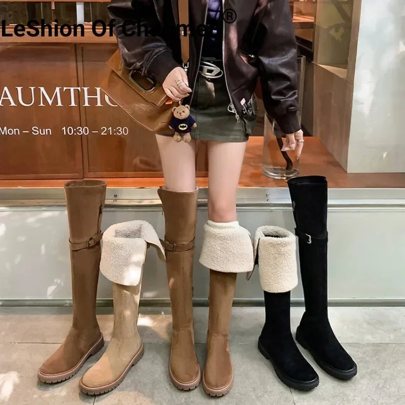 Women OverKnees Snow Boots Belt Buckle Warm Plush Foldable Boots
