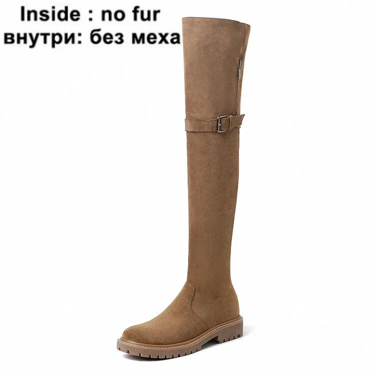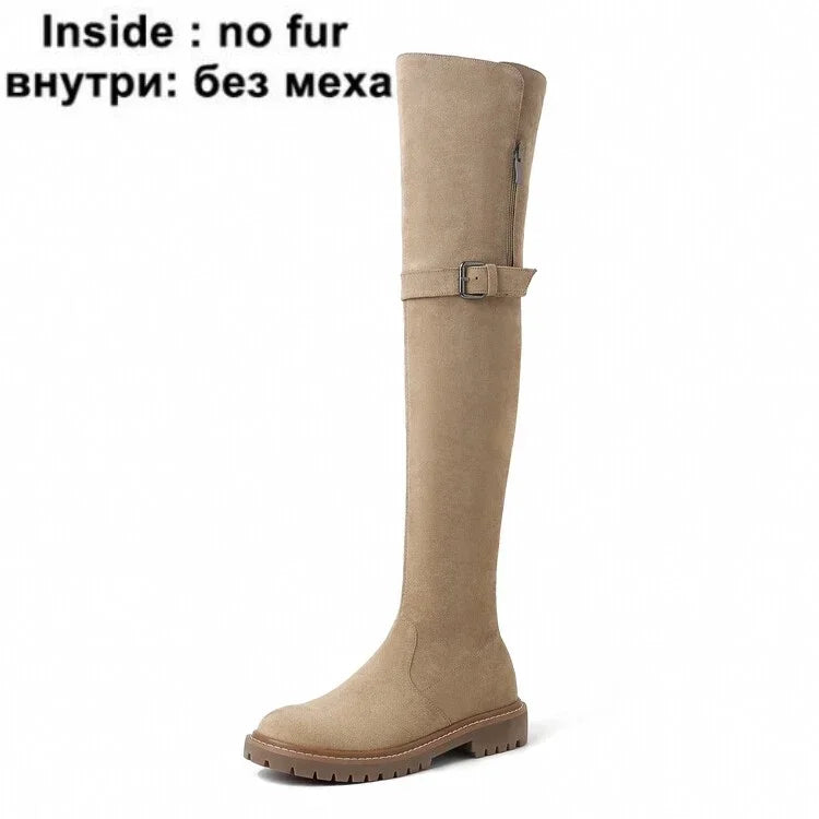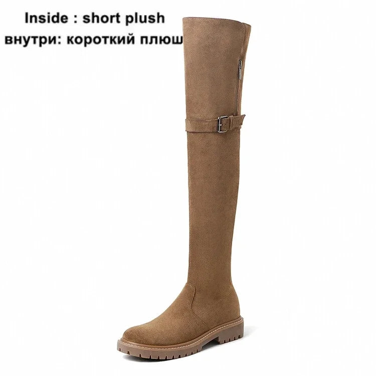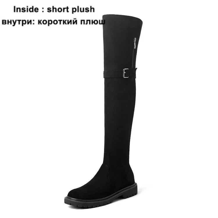 Ashore Shop Women Winter OverKnees Snow Boots Belt Buckle Warm Plush Foldable Boots Lady Round Toe Zipper Fleece Shoes Winter 42
