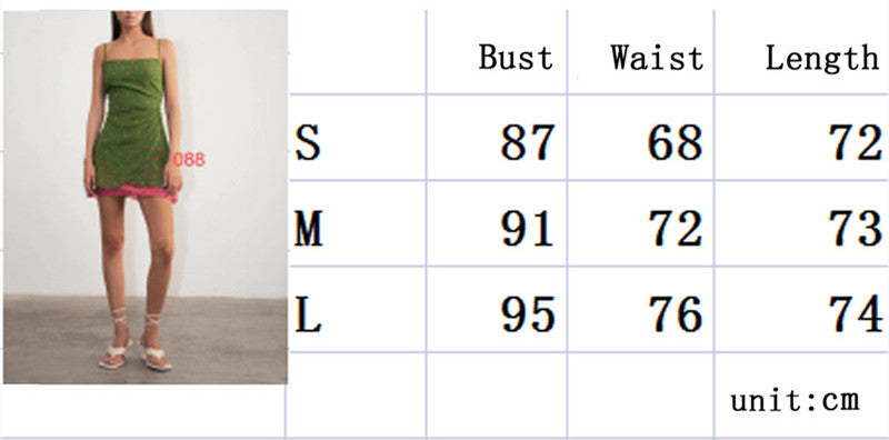 Women Spaghetti Straps Mini Dress Dots Print Contrast Color Slim Fit Summer Short Dress