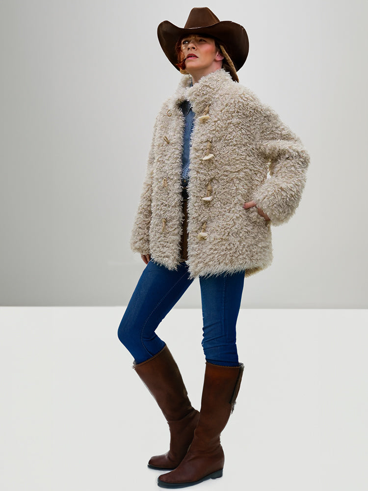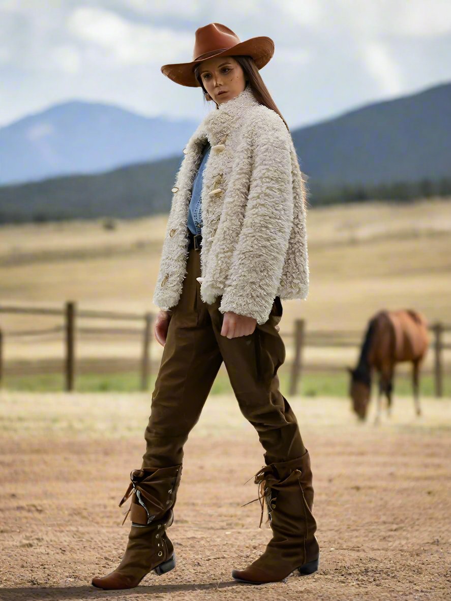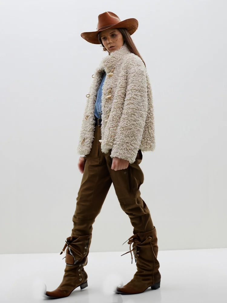 Elevate your winter style with the Ashore Western lambs wool short coat, a perfect blend of vintage charm and modern sophistication. Crafted from premium lambs wool, this coat offers exceptional warmth and a luxuriously soft touch.